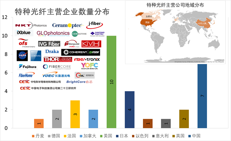 圖8 特種光纖主營企業(yè)分布情況