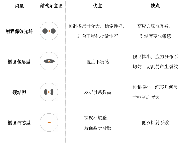表1 各類保偏光纖的優(yōu)缺點(diǎn)