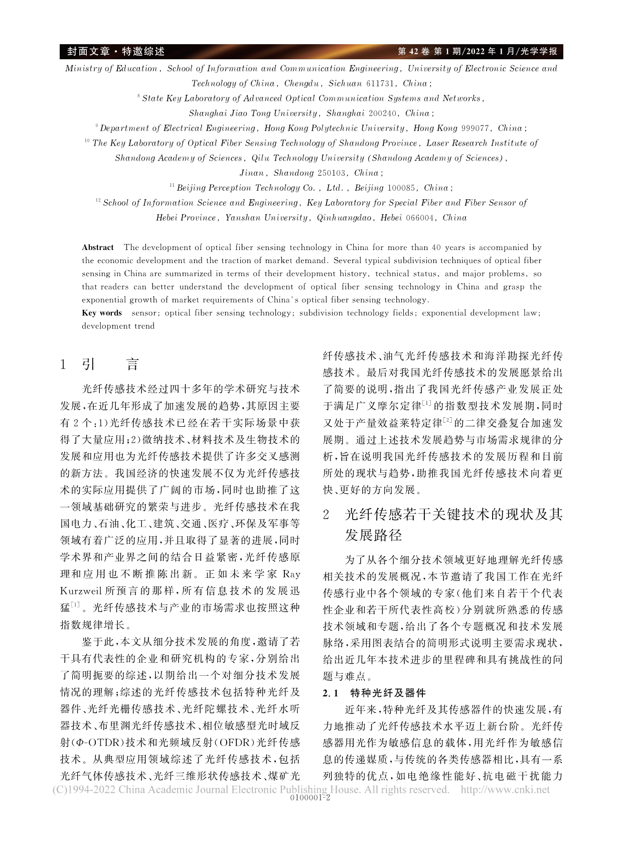 我國光纖傳感技術發(fā)展路線圖